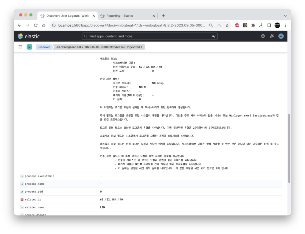 그림 – User Logouts Winlogbeat Security 샘플로그