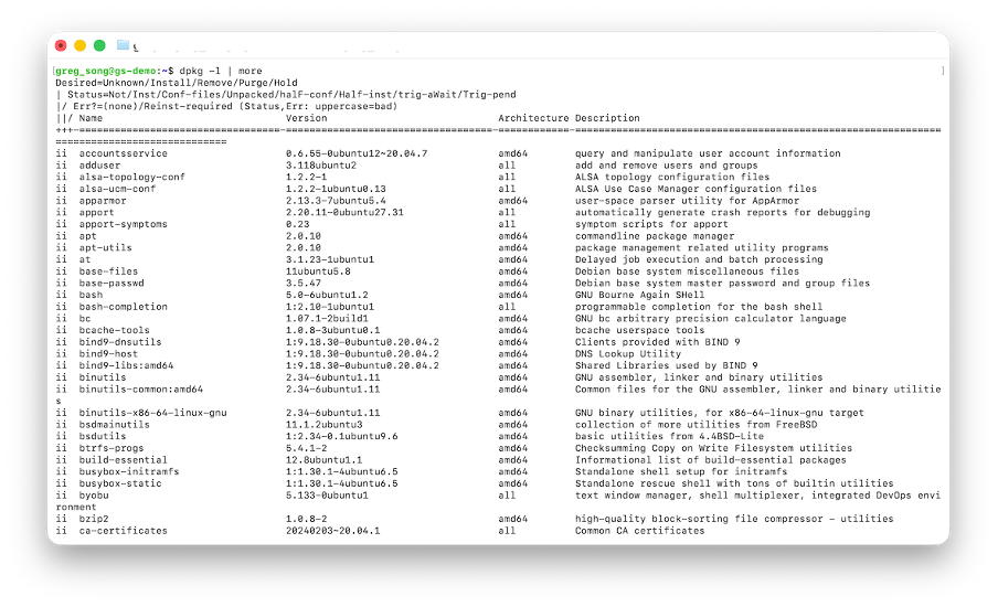 그림 dpkg -l | more 명령 실행 샘플 화면